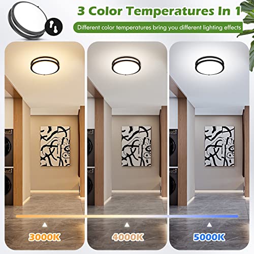 3 Color Temperatures in 1 Ceiling Light: The LED flush mount ceiling lights are available in 3 adjustable color temperatures: 5000K (daylight white), 4000K (neutral white), and 3000K (warm white). You can choose different color temperatures to create various vibes. Daylight white creates a fresh and bright ambiance, natural white brings a cozy and relaxing atmosphere, warm white gives off a retro soft ambiance
