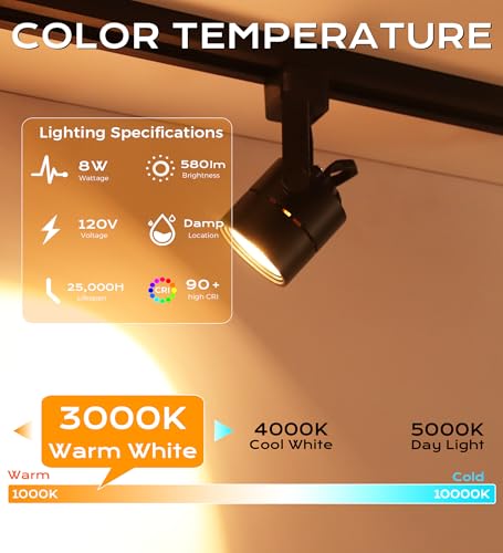 Warm and Inviting Illumination: The 8W 3000K Warm White Dimmable LED Track Light Head emits a cozy and welcoming warm white light. It creates a comfortable and inviting atmosphere, perfect for accentuating retail spaces or creating a cozy ambiance in any setting.