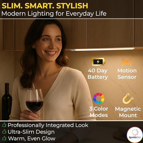 PERSONALIZED AMBIANCE, EFFORTLESSLY CONTROLLED: Elevate your environment with our battery operated rechargeable under cabinet lights. Offering 3 distinct color temperature options—warm, cool, or daylight white—you can effortlessly customize the ambiance to suit your mood or activity. Adjust the brightness levels to create the perfect atmosphere for cooking, working, or relaxing, ensuring optimal comfort and productivity.