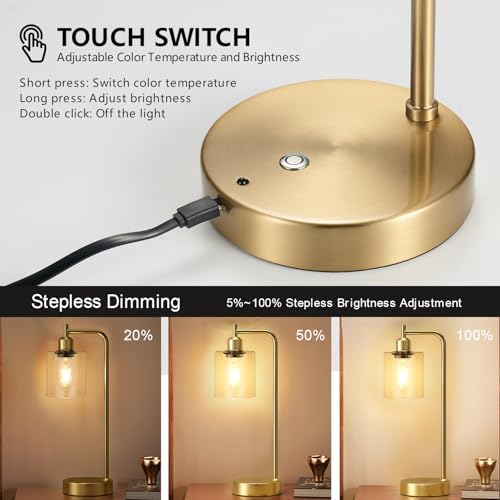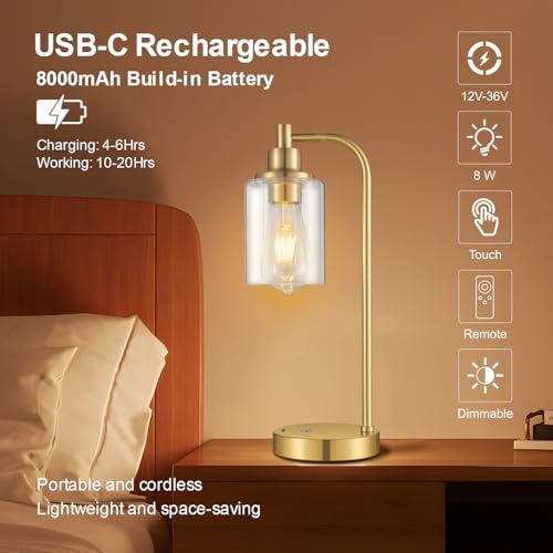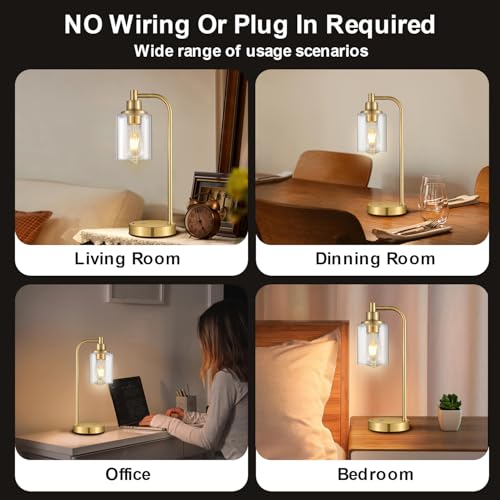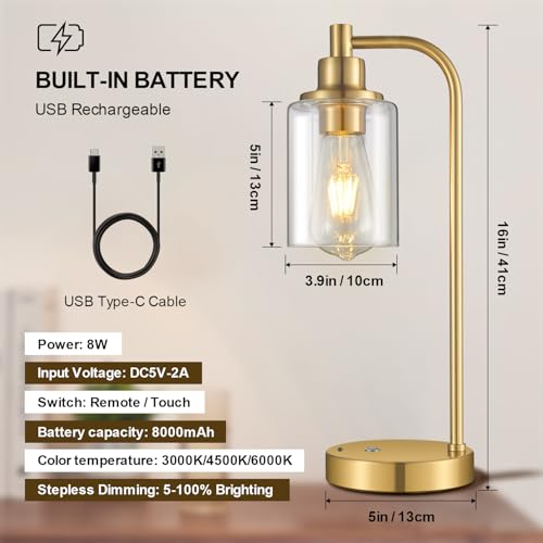 Wide Application: The portable battery desk lamp is made of metal with high temperature baking paint treatment on the surface, waterproof, rustproof and corrosion-resistant. Elegant clear glass lampshade design provides 360° all-around lighting. The classic industrial desk lamp is available in black/gold color and is safety certified, so you can use it with peace of mind, and it is also ideal as a gift for your family and friends.