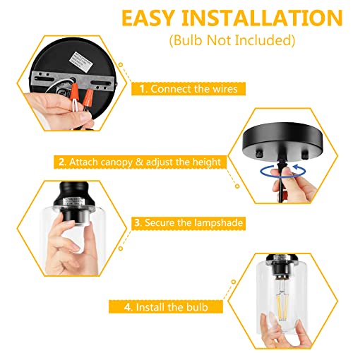 ?Modern Style & Wide Application?The glass hanging pendant light with black finish and clear glass shade, emits ample glow to light up the whole space. This simple and classic design adjustable ceiling lights are perfect for a variety of decors style ranging from vintage industrial to modern, especially bedroom, living room, dining room, kitchen island, hallway and any living areas.
