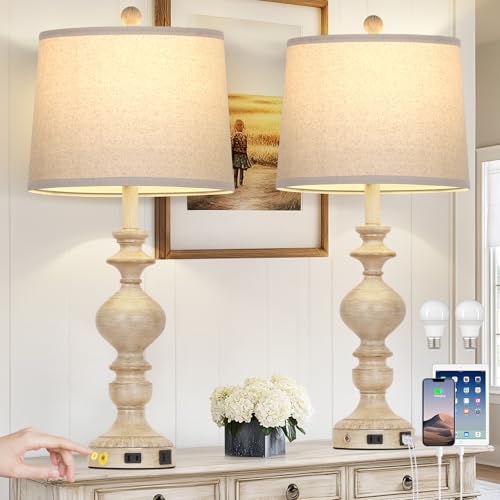 Farmhouse Table Lamp Set of 2: Antique beige resin lamp body paired with linen fabric lampshade,The classic design of lamps brings an elegant and sophisticated feel to your home space, easily complementing various interior styles such as accent, rustic, country, and mid century. The beige living room lamps are perfect for end tables, desks, beside sofas and dressers. It's a great gift choice for your family and friend.(Assembly Required)