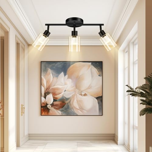 Modern Glass Track Lighting Kit; BoostArea 3 light track fixture is made of sturdy and heavy-duty metal in matte black finish, which is anti-rust and corrosion, super easy to clean, simple but sleek. Ideal classy lighting for indoors as a ceiling Light, bathroom sconce light, vanity light, bedroom bedside light, living room lights, exhibition light, and hallway light, picture wall light?bar light, coffee shop light.