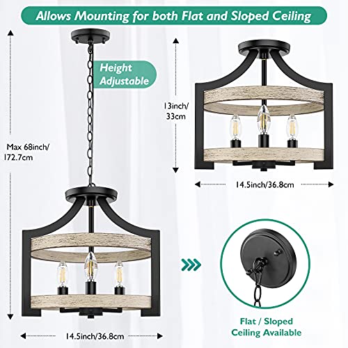 Farmhouse Style for All Space: Crafted of a black frame in white birch wood finish and a central candelabra cluster, this hand-painted convertible ceiling light fixture offers vintage charm and brings you antique aesthetic feelings. Perfectly used for kitchen, dinning areas, living room, bedroom, hallway entryway, foyer etc.