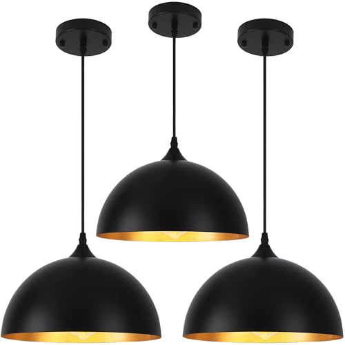 ? Stylish Black and Gold Pendant Lights — These modern pendant lights for kitchen island feature a matte black dome with a warm gold interior. The striking contrast adds timeless elegance and creates a cozy golden glow, making them perfect black pendant lights for kitchen island, dining rooms, bedrooms, or living spaces.