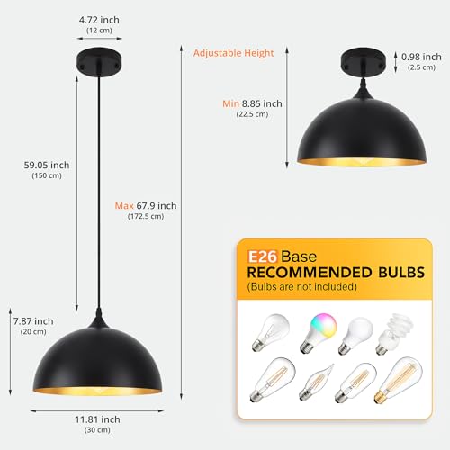 ? Flexible Height Adjustment — Measuring 11.8" wide, with an adjustable height from 8.85" to 67.9", these kitchen island pendant lights can be customized for your space. Works beautifully on flat, sloped, or vaulted ceilings, making it the ideal choice for versatile kitchen island lighting.