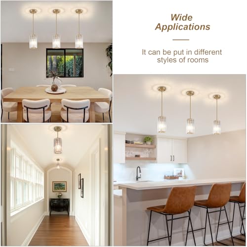 ?Multi-functional Uses?:Our gold mini crystal pendant light are not only suitable for use in kitchens, dining rooms, corridors, bedrooms and other places at home, but also very suitable for commercial settings such as bars and coffee shops. They can create a warm and comfortable atmosphere and are highly practical crystal pendant lights.