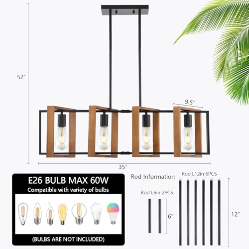CUSTOMIZED & ADJUSTABLE HEIGHT : There are total of 8 rods in this Farmhouse Rectangular Chandeliers. The length of 6 of them is 11.8 inches each. The other 2 rods length is 5.9 inches. You can adjust the hanging fixture by the rods to 11.8", 23.6", 35.4", and 41.3"