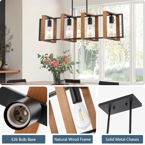 MODERN & FARMHOUSE: Create a cozy and comfortable home atmosphere with the farmhouse-inspired Briarwood Collection Rustic Linear Chandelier,especially designed to illuminate the heart of your kitchen, dining room or industrial styled places. Openwork wood and metal frame adds rustic vintage flair to your space, it boasts rustic-finished wood construction, designed to cast a soft ambient light over your room.