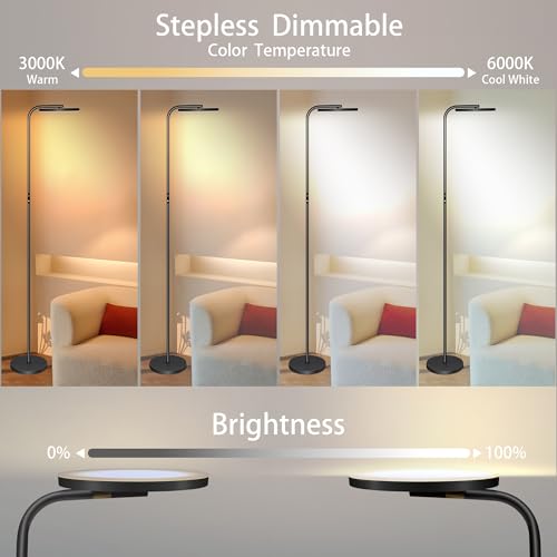 36W Super Bright Floor Lamp: 69 in tall standing lamp, with its 36W ultra-high brightness and the 350° rotating head which can face completely downward or upward?you can easily rotate it to the desired angle to illuminate every corner of the room