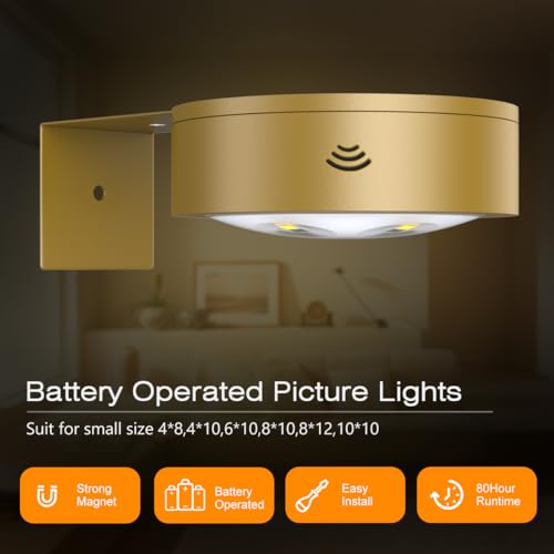 Battery Operated Picture Lights: The 3-pack picture lights is powered by 3A batteries(not included), making it convenient and easy to install without the need for wiring or electrical outlets.