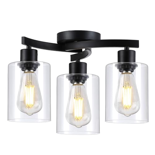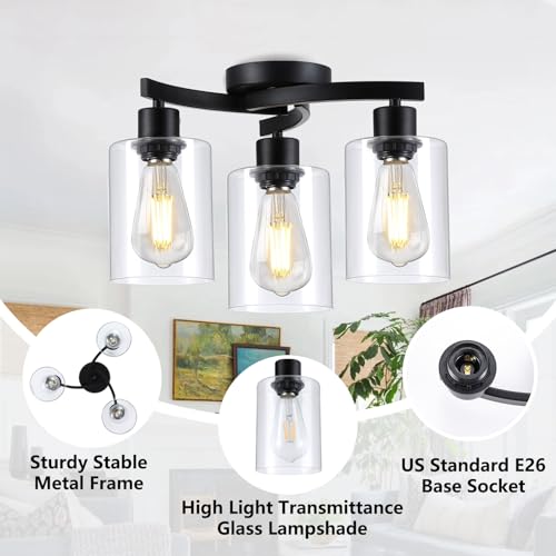 ????????????????????????? ???????????????????????????? ???????????????????? ???????????????????????????? ?????????????????????????Elevate your home décor with 3WWWUEE modern black flush mount ceiling light. Black lamp body and clear glass lampshades create a stylish, modern aesthetic complements any interior design.