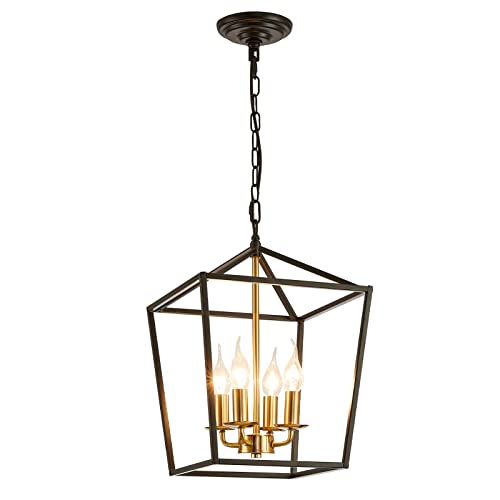 Black and Gold Chandelier:This chandelier instantly becomes the focal point of your home decor with its gold center sconce and geometric look design.The black cage frame fills your dining room, foyer or kitchen island with elegant(indoor use only)