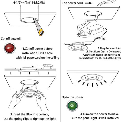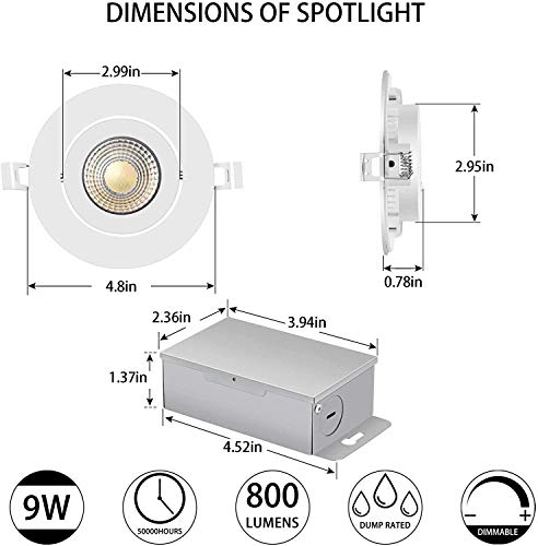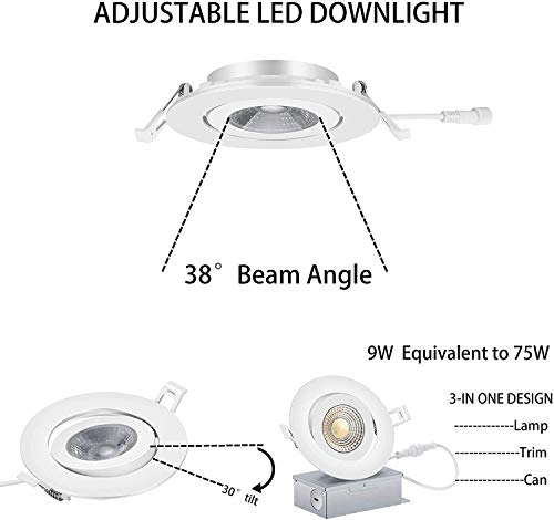 Energy Saving and Smooth Dimming - This 9W COB LED downlight is equivalent to a 75W replacement, reducing 88% of the electronic bill fee and energy saving, it is green and eco-friendly with AC120V input voltage. The LED Lights can smoothly dim 10-100% brightness what you want at any time and any place.