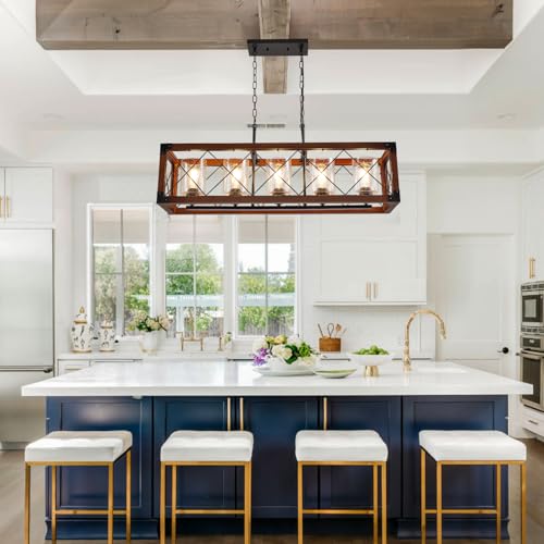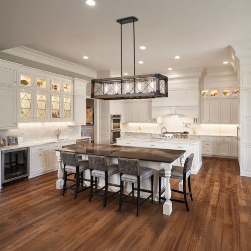 ???Perfect Design Style?This farmhouse pendant light has a rectangular frame and a row of central lampholders, kitchen pendant light fixture is the perfect addition to your home lighting. This kitchen island pendant light is your best choice, more and more customers are choosing this fixture for better comfort and to cater for new trendy styles, it fits all decorating styles.