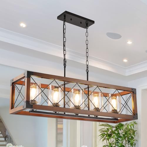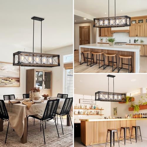 ???Quality materials? This kitchen island pendant light features a Wooden frame and a heat-resistant chandelier base that protects the bulb. The black paint on the frame prevents rust and fading, extending the life of the chandelier.