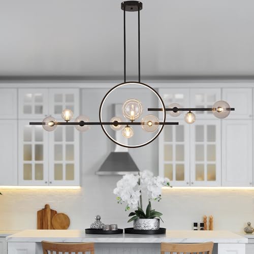CHANDELIER DESIGN FEATURES: This Dining room lights over the table are is uniquely designed with high-quality metal material, which is not only sturdy and durable, but also noble and elegant. With glass lampshade, it makes it more artistic and fashionable.