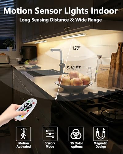 ? Motion Sensor & Remote Control ?The under cabinet lighting wireless have 2 modes: motion sensor and remote control. The sensor mode activates when human motion is detected within 10-13ft and automatically turns off after 15-20s. The cabinet lights can also be controlled with the included remote; allowing for easy on/off, timer settings, dimming, and color switching. Measure 7.87" L x 1.57" W x 0.51" T, they are lightweight and ideal for providing auxiliary lighting in hard-to-reach areas.