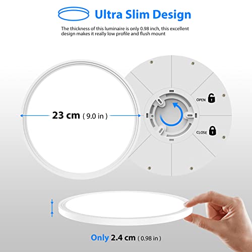 ??????Wide Application ?? The shape of hallway light fixtures ceiling with a simple and elegant design, ultra slim (less than 1 in.) made it perfect for any low ceiling area. This bedroom light fixture is IP44 water and dust resistant and protects against splashing water. Perfect for light-up kitchen, bathroom, bedroom, living room, hallway, lounge, toilet, office, basement, utility room, cloakroom, stairs, or any other dark area needs more bright.