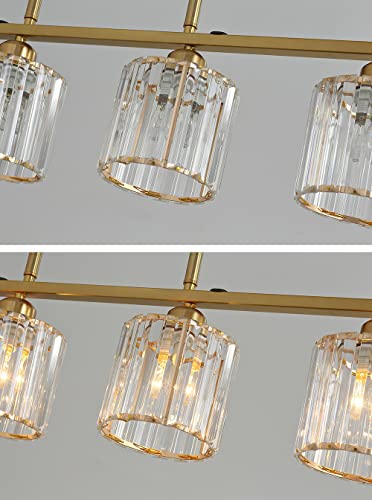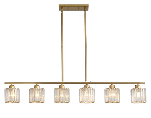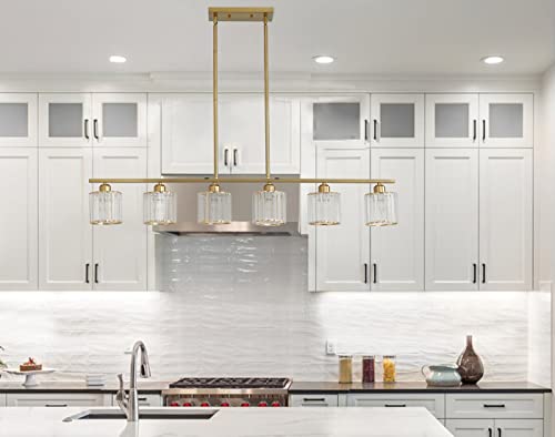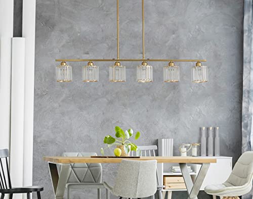 ?Adjustable Hanging Height & Ideal Dimensions? Our modern kitchen Island Chandelier Light is equipped with 6 Rod (6*11.8") adjustable up to 35.4". The width is 47.24", glass shade is 5.51" x 4.72" and canopy is 10.23" x 4.7". The measurement is suitable for flat, vaulted, and sloped ceilings.