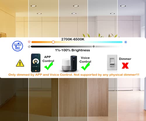 ?Music Sync +8 Scenarios? Recessed lighting have up to 16 million colors. (NOTE:not compatible with Dimmer switch, will affect service life, and support the conversion from warm white light to cool white light (2700K to 6500K).