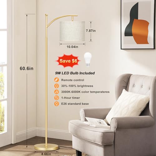 {Adjustable Differnent Brightness & Color} This floor lamp with remote can adjust the brightness from 30% to 100% and color temperature from 3000K to 6000K(warm white, natural white and cold white).