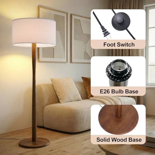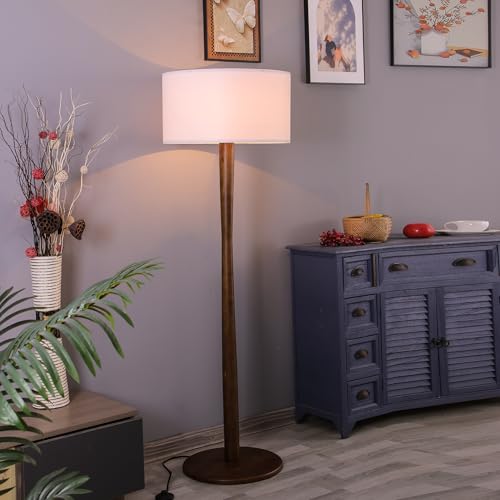 ?Stylish Design?This wood tall lamp for living room equipped with line lampshades and walnut poles, an unique and elegant design perfect for anywhere. The elegant linen shade can effectively block part of the lighting source, especially eye-caring for reading working in your bedroom. Simple and classic design makes this floor lamp perfect for anywhere in your home or office