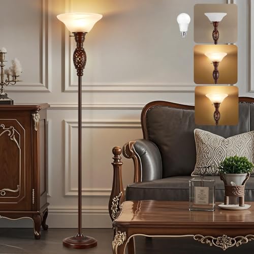 Adjustable Dual Lighting: The floor lamp for bedroom or living room offers a 4-way rotary switch to control the main light (9W E26 bulb included) and carved resin night light independently, creating customizable ambiance