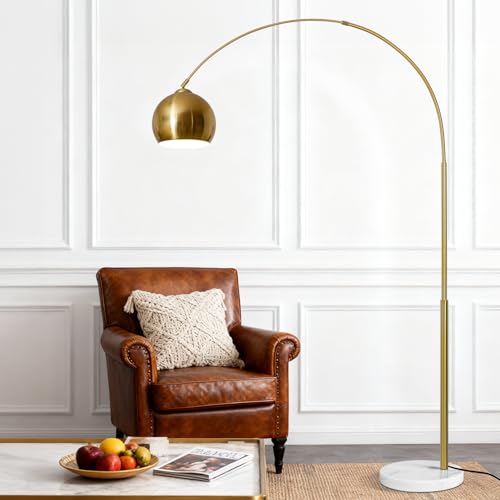 77” Mid Century Modern Arc Floor Lamp: Elevate your living space with our arc floor lamp. Standing at a super tall 77.6 inches, our modern floor lamp gracefully arches over your sofa. Also, with the smooth arc design and the antique brass finish spherical shade, our minimalist gold floor lamp perfectly matches any industrial and mid-century modern decor. Beyond the lighting, it's also a luxury decoration with a striking look. Transform your room into a stylish haven and impress those who enter.