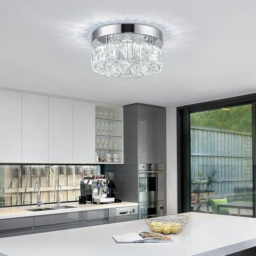 1. Premium Materials & Elegant Design: Crafted from high-quality K9 crystal and polished stainless steel, this Crystal Flush Mount Chandelier offers a rust-free, durable finish. The larger crystal size (30 x 50 mm) provides a more luxurious sparkle compared to standard 22 x 22 mm crystals, making it a stunning addition to any modern or classic interior.
