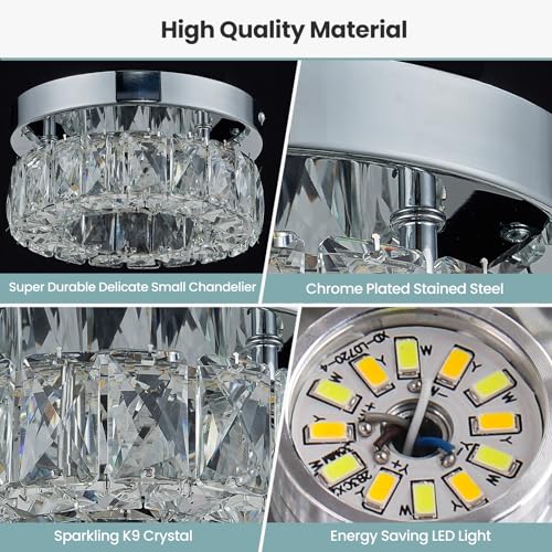 2. Perfect Size for Small Spaces: With a compact design measuring D 7.9" x H 4.7", this Mini Chandelier Light Fixture is ideal for lower ceilings or smaller spaces. It’s perfect for bedrooms, hallways, closets, kitchens, bathrooms, and even over dining tables. Please confirm the size before ordering to ensure a perfect fit.