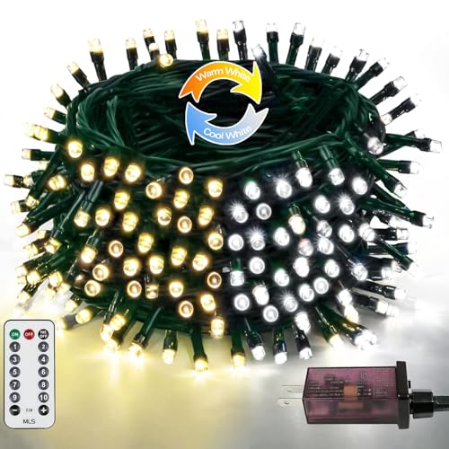 New Upgraded Extendable Plug in String Lights for Christmas Decor: Warm white and cool white two colors in one set,super bright with new upgraded LED bulbs. This extendable 200 LED green wire plug in string lights have 9 lighting modes to satisfy your diverse decorative effect. Total length is 82ft, of which 66ft with lights.