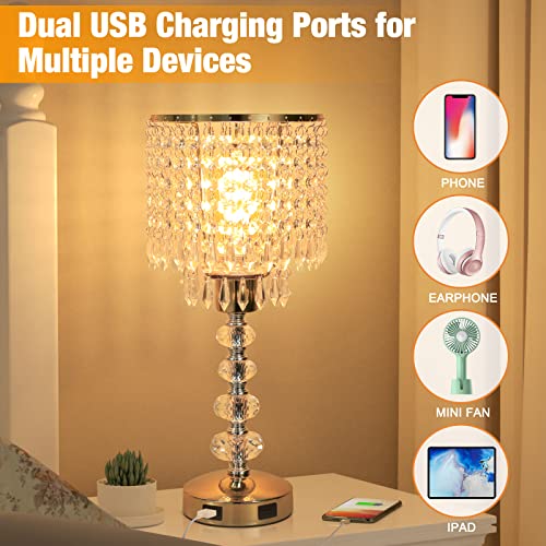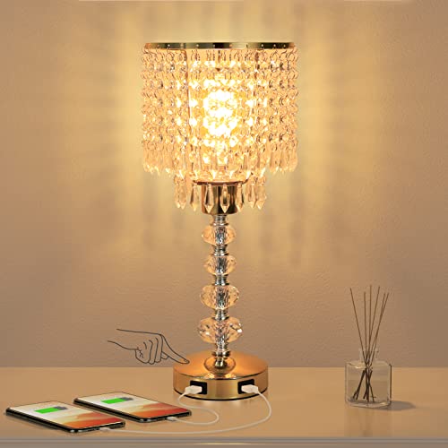 ????????Modern Design & Great Gift---This gorgeous crystal lamp is very elegant and upscale, adding a different visual experience. Its' sparkling crystal shimmering add beauty to your room. And it's usb ports is very convenient, add much happiness for daily life. And this trendy silver lamp won't take up much room on your nightstand. Lamp base Dia-4.7inch, Height -16.9inch, perfect size for bedside, side table, end table. It will be a great gift for your families and partner.