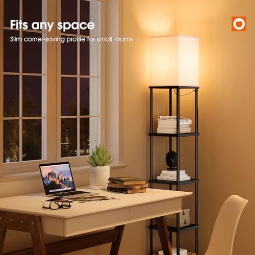 ?From Clutter to Chic in One Step?Perfect for displaying your favorite decor like vases and photo frames, or keeping daily essentials within reach, this versatile shelf floor lamp functions both as a stylish living room accent and a space-saving bedside nightstand with light. It’s an ideal gift for holidays like Mother’s Day, Thanksgiving, or Christmas.