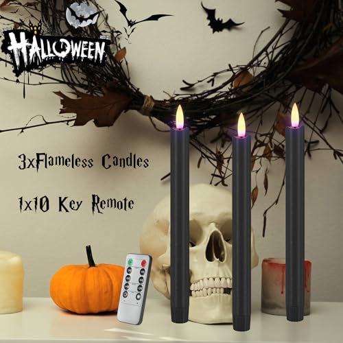 ????WHAT YOU GET: 3 pack black Halloween taper candles (9.6 inch high x 0.78 inch diameter), one 10-key remote controls and one user manual. Each candle is wrapped by paper to prevent scratch and all candles come packaged in strong styrofoam and excellent box to protect them from being damaged in transit.