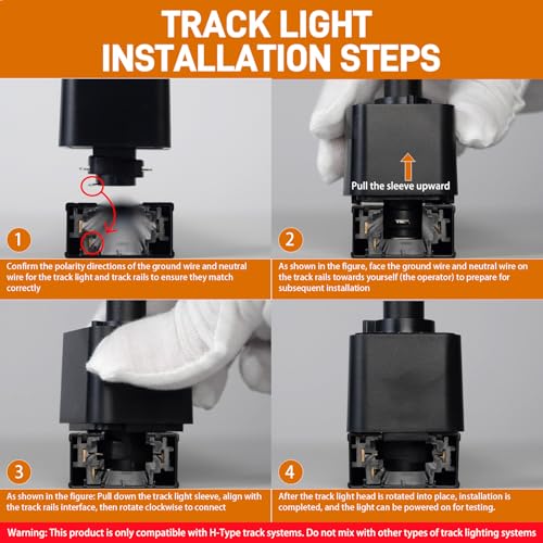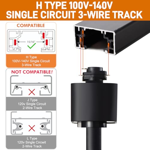 Only for H type track lighting rails: AIBISOD track light heads are only compatible with single circuit H type track lighting systems. (track rails not included)