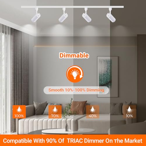 10%-100% Smooth Dimming LED Track Light: 20W white track light heads supports 10%-100% smooth dimming of more than 90% dimmers in the market, 1900lm brightness, 24°beam angle, better meet the user's lighting needs