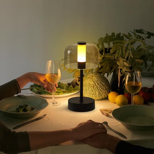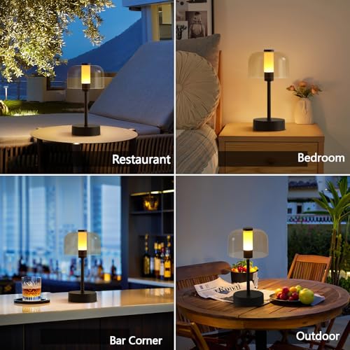 ?Vintage Elegance & Moderm Luxury Design?This rechargeable cordless led night light perfectly combines practicality and modern design,a wireless portable ambient lighting that says goodbye to the constraints of wires.The Type-C interface charges quickly and efficiently,and the modern small table lamp can create a and romantic atmosphere whether touch battery night light dimming up for emergency power outages or for restaurants,outdoor parties at night.The exquisite smoke gray lampshade is paired with the classic black color,and this balance of retro and modern,the small table lamp will add a touch of gentle light to a busy life.
