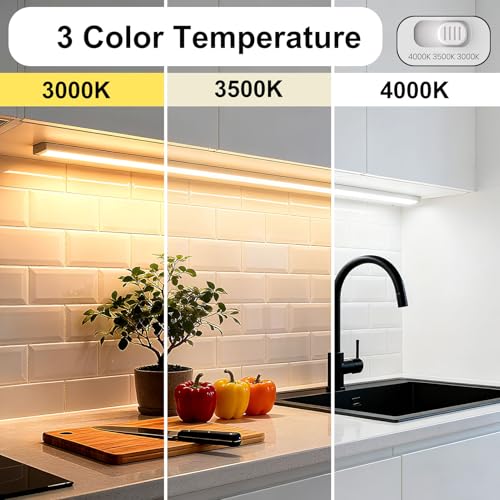 3 CCT Modes & 90+ CRI for Kitchen Lights Under Cabinet: Adjust 3000K warm/3500K neutral/4000K cool white via surface switch. 90+ CRI ensures true color reproduction (critical for food prep). Unique indirect light tech eliminates shadows—perfect for under kitchen cabinet lighting