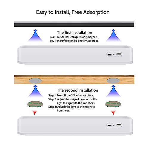 ?Super Bright and Eye-caring Tech?: This Wireless under cabinet light consists of 20 LEDs and brightness at 350LM.Touch the switch to adjust 3 color modes: white light5500k/natural light4500K/warm light3500K. Each color mode has 3 brightness levels: low/medium/high light. This closet light uses the latest LED technology, the output light is uniform, gentle, and not glaring. The LEDs are powered by low-voltage DC, no flicker, and the lighting effect is visually closer to natural light.