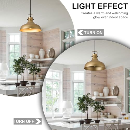[INDUSTRIAL & VINTAGE DESIGN]: 2-Light industrial farmhouse pendant light with adjustable cord, Gold finish featuring retro-style dome shade, this antique pendant lighting is made of sturdy metal construction in gold finish and inner gold finish.The vintage pendant lights is ideal for home, dining room, kitchen island, warehouse, entryway, corridor, restaurant, cafe, bar, club, barn, working bench.