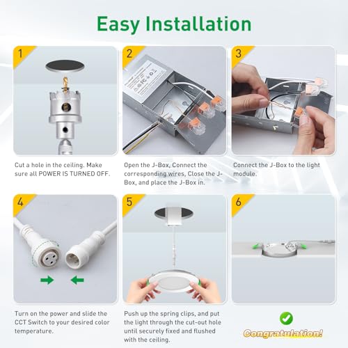 ?Easy Installation & Customer Service?ALLUSO LIGHTING LED recessed light includes all the needed accessories and user manual in the package. Follow the instruction, simply cut a 114mm/4.5" hole in your ceiling, connect the J-Box to your cable, and fix the light in the place with spring clips. At the same time, we provide a 3-year warranty and after-sales service. Any questions, please contact us freely, we will reply within 24 hours!