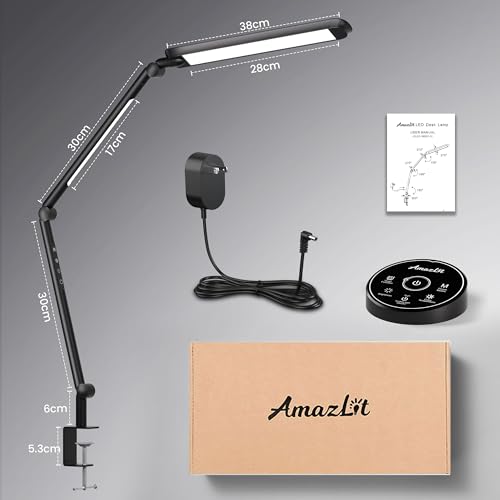 ?Extra Wide Metal Clamp, Multiple Rotation Angles? - Strong metal clamp supports up to 2.1 inches table top, saving space and keeping your desktop clean. With versatile 6-axis design and Aluminum magnesium alloy lamp body, you can adjust the light directions freely according to your personal need. A 180 days money-back and a 24-month AmazLit after sale promise. Any questions about our products, please contact our seller support via Amazon and we will reponse by the earliest time