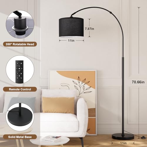 70 Inches Classic and Modern Arc Floor Lamp: This arched floor lamp combines smooth curves with mid-century modern style, fitting seamlessly into any decor. Versatile and functional, it can be used as a reading lamp, office lamp, or living room lamp. Equipped with preset modes including Nightlight, Baby Feeding, Work, and Immersive Reading, the remote control allows you to easily switch settings to match your needs. The 1-hour timer function ensures a peaceful sleep without the need to wake up and turn off the light