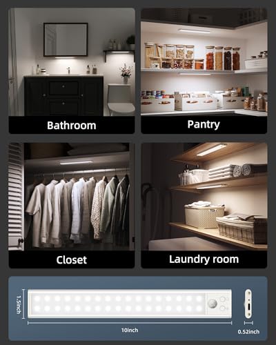 Dimmable Closet Lights: Featuring 5 adjustable brightness settings (20%–100%), or a long press activates stepless dimming, meets different lighting needs. You can easily tailor this LED cabinet light to your needs, whether you need task lighting for cooking or a motion sensor night light that offers a soft glow without disturbing others.