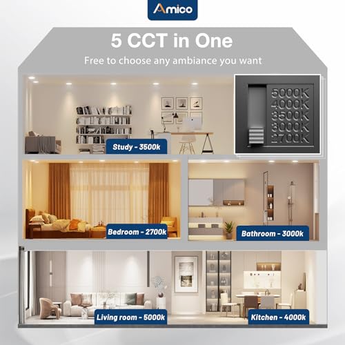 5 CCT-in-1: 5 color temperature(2700K, 3000K, 3500K, 4000K, 5000K) is selectable to you, which successfully eliminates the hassle of returning or exchange products due to inappropriate color temperature. Just slide the switch on the side of the J-box and you will get the most-desired color that best fit in your room type.