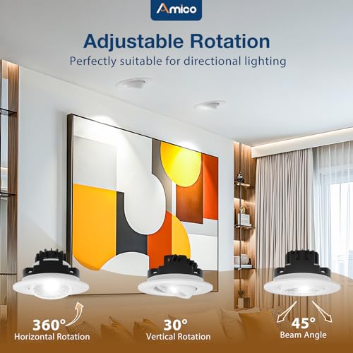 Ingenious ergonomic design: The 3 inch gimbal led recessed lights feature a pearl gloss optical lens, creating a soft lighting ambience without annoying glare, flicker, or buzzing sounds.