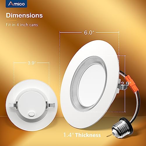 Wide Application: Amico retrofit downlights are damp-rated and can be installed in bedrooms, living rooms, kitchens, and hallways, in addition to bathrooms. A wide range of applications saves the trouble of picking multiple lights.