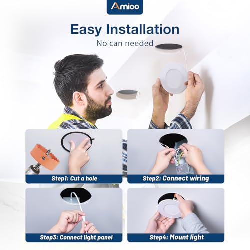 High Brightness: Amico's 4 inch slim pot lights use the world's leading LED chips with higher lumens and lower power. 700LM consumes 10 Watts, which equals to 60W halogen lamp, saving you up to 90% in energy costs a year.