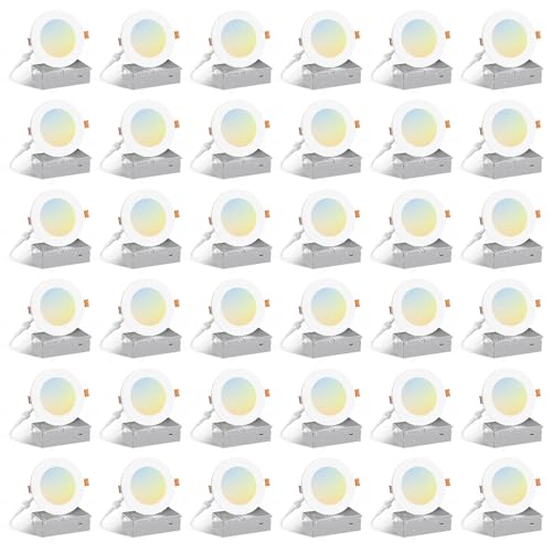 Easy Install: These 36 pack recessed lighting 4 inch is suitable for retrofit and new decoration: 1.Cut a hole in ceiling with 1:1 hole template 2.Connect the Jbox to the cable 3.Use spring clip to fix it on the ceiling. Hassle-free, the installation can be completed in minutes.